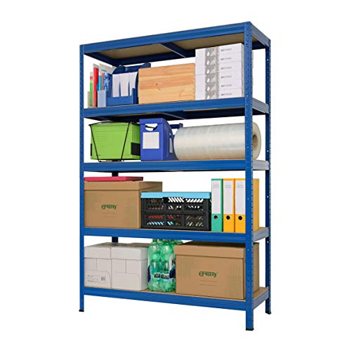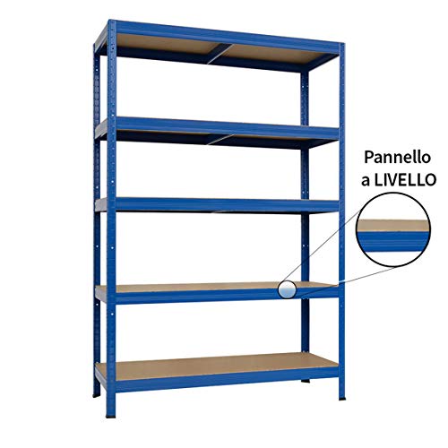 GIASTA - Scaffale ROBUSTO 120 x 45 in legno e metallo verniciato BLU lucido per carichi pesanti portata 250Kg a ripiano montaggio facile ad incastro