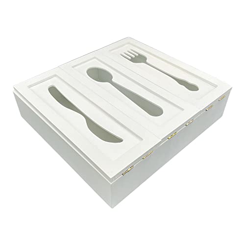 Gicos Portaposate Cucina 3 Scomparti in Legno Bianco Porta Posate da Cassetto Shabby, Metallo, Unica