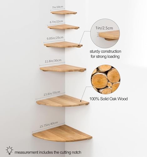Gieanoo Mensola angolare in legno in legno di quercia, mensola da quercia 30cm
