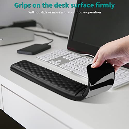Cuscinetto per tastiera: il supporto per il polso per tastiera La base in gomma antiscivolo può afferrare saldamente qualsiasi superficie piana e dura e mantenere il supporto per il polso in un unico posto durante il lavoro o il gioco. polsiera per tastiera Non avrà odore sgradevole rispetto ad altri poggiapolsi. Perfetto per il vostro computer portatile, computer e PC.