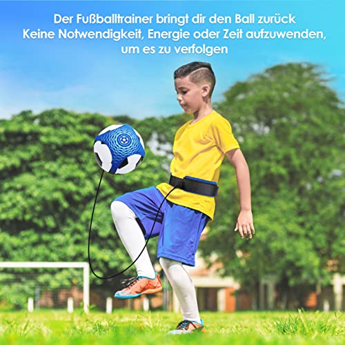 GIEMIT Allenatore da calcio da solo, per bambini, con cintura regolabile in vita per bambini, principianti, Kick Off Trainer (blu e blu Infinite)