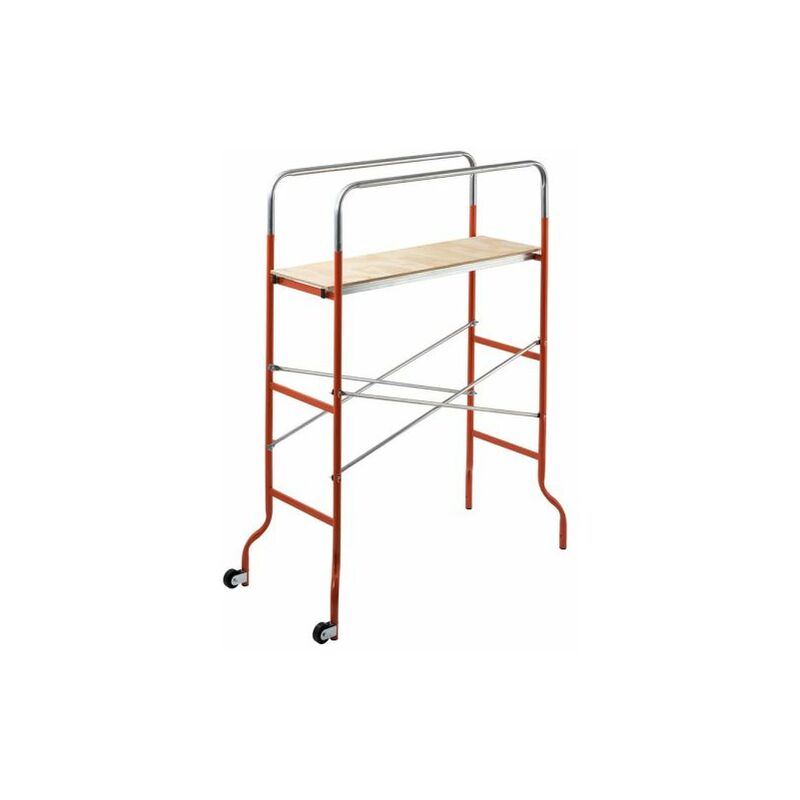 Trabattello “Kreo” Gierre codice F0005 in acciaio verniciato, con pianale in legno di Pino Radiata Multistrato, sostenuto da una struttura in tubolare di acciaio sagomato, per incastro perfetto al montante. Quattro tiranti incrociati in acciaio completano il trabattello. Su uno dei due lati sono presenti 2 ruote fornite in kit di montaggio, ad agevolare lo spostamento durante l'utilizzo. Con il trabattello “Kreo” Gierre codice F0005 è possibile raggiungere un'altezza di lavoro di m 3,37. Caratteristiche tecniche: portata massima (kg) 120 altezza massima di lavoro (mt) 3,37 dimensioni prodotto chiuso con imballo (HxLxP mt) 1.65x0.61x0.19 dimensioni prodotto chiuso senza imballo (HxLxP mt) 1.63x0.59x0.17 dimensioni prodotto aperto (mt) 1.79x1.44x0.62 altezza massima del gradino più alto o della piattaforma (mt) 1.37 altezza massima prodotto aperto (mt) 1.79 lunghezza del prodotto tutto chiuso (mt) 1,63 peso con imballo (kg) 17.10 peso senza imballo (kg) 16,6 materiale pianale legno