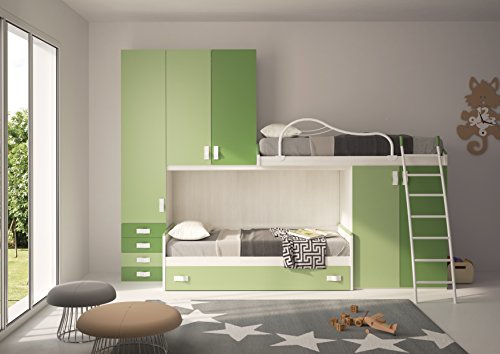 Giessegi Job Ares Cameretta Completa, Legno, Betulla/Salvia/Giada, Singolo, 200 x 3 x 50 cm