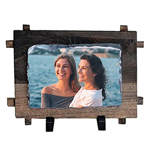 GIFART Stampa su Pietra Ardesia con Supporti da tavolo applicata su Cornice in Legno per essere appesa Personalizzata con Foto, Immagine o Testo