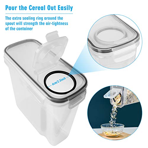 Gifort Contenitori Alimentari per Cereali Set, Contenitori per Cereali Ermetici Senza BPA con Etichette e Cucchiai, Coperchio per Alimenti Set Cereali Perfetto per Cereali,Pasta, Cheerios (4PCS)