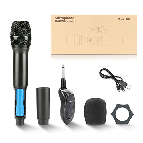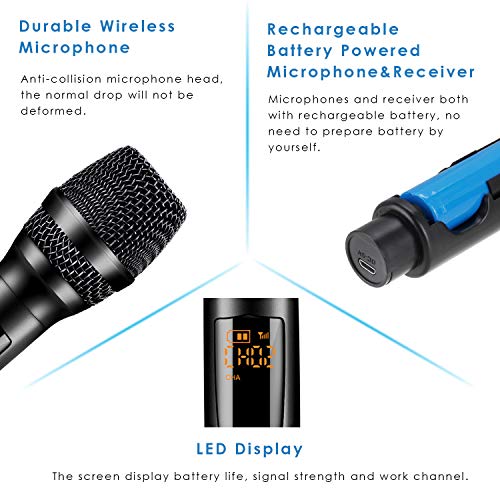 ♫♫【Microfono wireless UHF ricaricabile】 Nuovo aggiornamento: non è necessario impostare! Non è necessario acquistare batterie! Basta collegare e utilizzare! ❤Il microfono e il ricevitore sono ricaricabili con la porta di ricarica USB DC-5V, quindi possono essere caricati ovunque e in qualsiasi momento. 10 bande UHF selezionabili, senza possibilità di interferenze di altri dispositivi. Con il raggio d'azione di 50 piedi, il microfono ti offre la massima libertà.