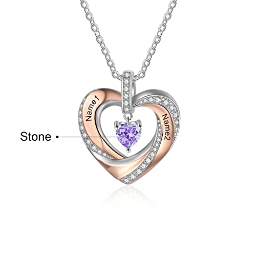 Giftider Collana Nome Cuore Personalizzata per Donne Ciondolo Perlina Argento con 2 Nome Pietre di Nascita Incisione Madre Figlia BFF Catena Regalo per la Festa Della Mamma San Valentino Natale