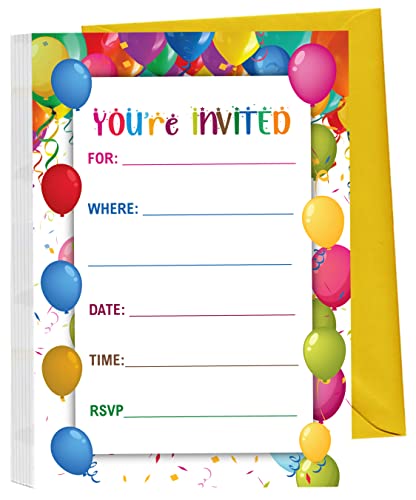 Dimensioni ideali: Il biglietto di invito per feste è di circa 18 cm di lunghezza e 12,5 cm di larghezza. Abbastanza spazio vuoto per scrivere i dettagli della festa. Questi inviti con palloncini sono splendidamente progettati per la tua festa con buste gialle.