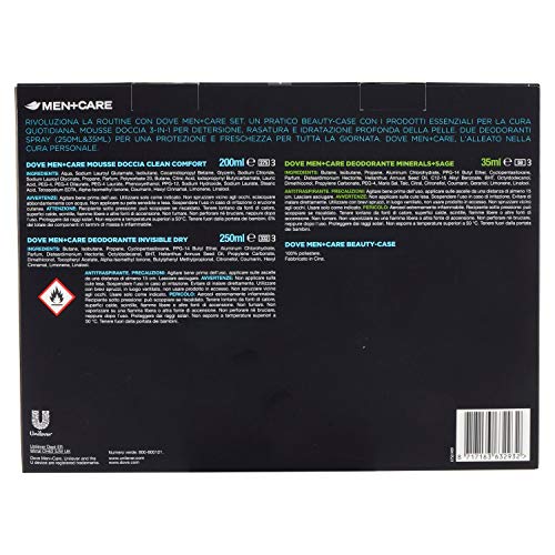 La confezione regalo contiene 1 MOUSSE Clean Comfort 200ml 1 DEO Invisible Dry 250ml 1 DEO Minerals&Sage mini size 35ml racchiusi in un delizioso beauty case.
