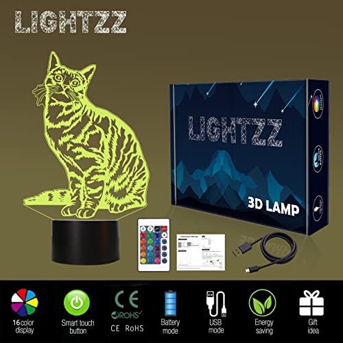 Cat Pet Gifts for Kids Girls,3D Illusion LED Cat Lamp Night Light with Remote Control 16 Colors Changing Decoration Bedside Lamps