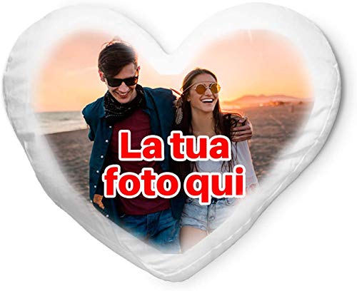 Gifty Lab Cuscino Personalizzato a Forma di Cuore, con la Tua Foto - 40cmx40cm - Bianco
