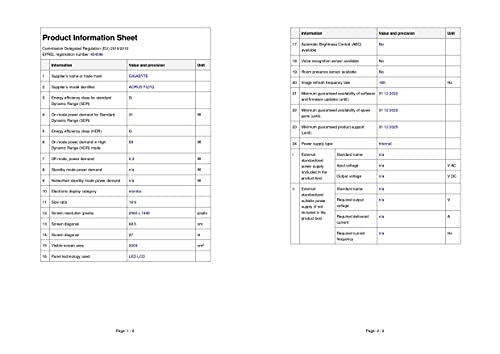 Gigabyte AORUS FI27Q - Monitor Gaming 27'' 2K ultra HD (2560 x 1440, 16:9, pannello IPS 165 Hz, schermo piatto) Colore nero