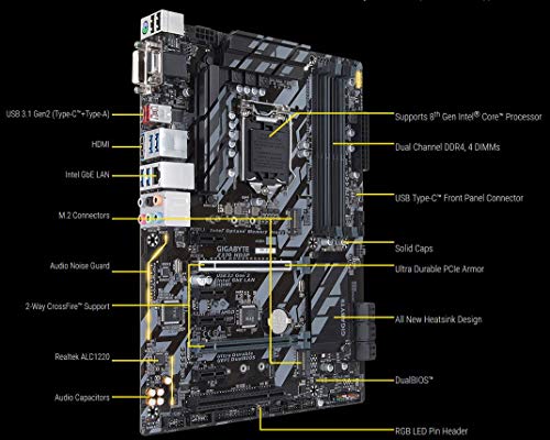 Scheda madre Intel Z370 Ultra Durable con supporto CrossFire, USB 3.1 Gen2 con tipo C, Intel GbE LAN con protezione da 25KV, Dual M.2, Fusione RGB, Smart Fan 5.
