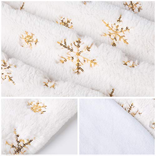 GIGALUMI Gonna per albero di Natale, 120 cm, colore: bianco e oro, con pelliccia sintetica bianca innevata, decorazione per albero di Natale, vacanze, casa, feste, ornamenti (bianco/oro)