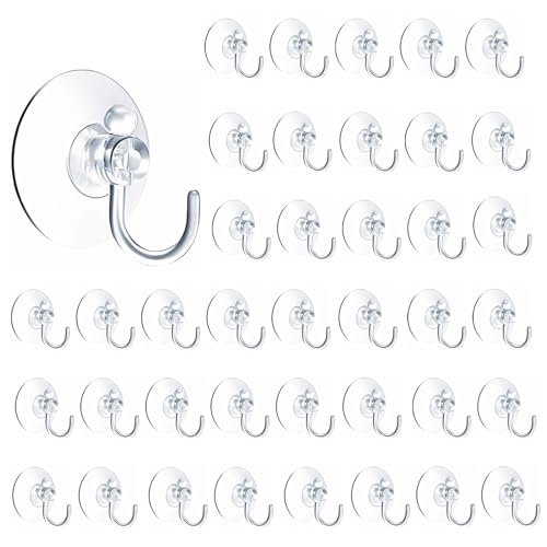 GIGIIS Ventosa con gancio 40 Pezzi Ventosa Natalizia con Gancio 40mm Trasparenti Ventose di Ancoraggio PVC Ventosa Forte Tenuta per Vetro Piastrelle Specchio di Ceramica Superficie Liscia