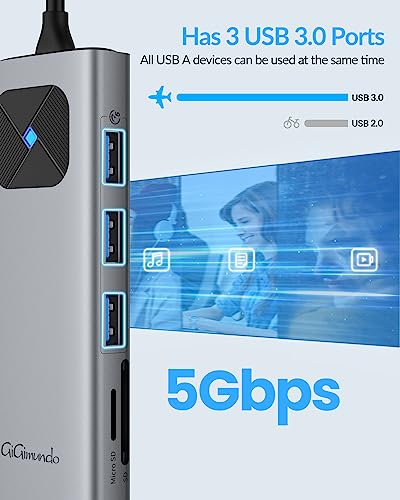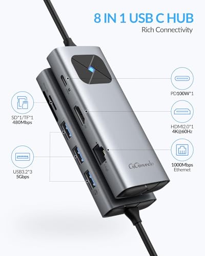 GiGimundo Docking Station USB C HUB, Adattatore USB C 8 in 1 con HDMI 4K@60Hz, 100W PD, 3 USB A 3.0, porta Ethernet RJ45, Lettore di Schede SD/TF, Compatibile per MacBook Air/Pro, iPad, Dell, HP