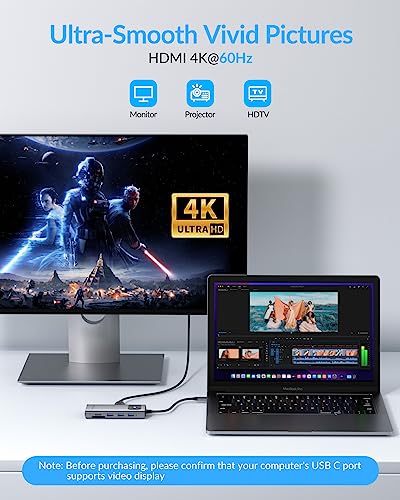 ☛【Ampia Compatibilità】Questo HUB USB C è compatibile con tutti i sistemi e dispositivi con porte USB-C che supportano l'uscita video. L'hub USB C è compatibile con Windows, Linux, Mac OS. Supporta anche la maggior parte dei dispositivi con porta USB C, come iMac, MacBook Pro/Air, iPad Pro/Air, Mac Mini, Dell XPS, Surface Pro 9/8/7, Surface Go, Galaxy S23/S22, Galaxy Tab, Steam Deck e Switch.