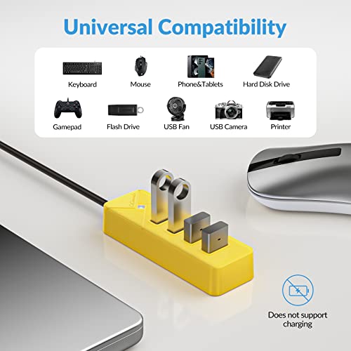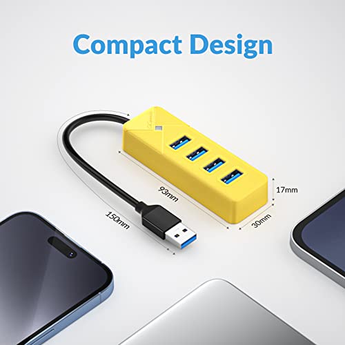 GiGimundo Hub USB 3.0, Multi USB Splitter 4 Porte per Laptop, Trasferimento dati Veloce Distributore USB 3.0 (Cavo da 15 cm) Compatibile con MacBook, PS4, Surface Pro, Flash Drive, Mobile HDD, Giallo