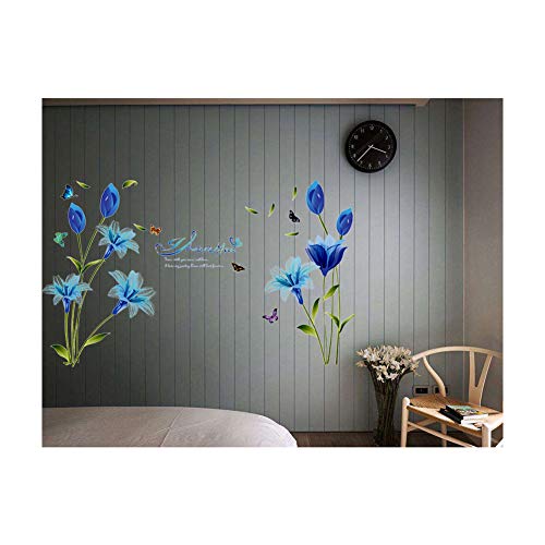 Blu giglio fiori con la farfalla decalcomanie della parete fai da te rimovibile farfalla fiore Adesivi Tappezzerie per Decorazione Camera Soggiorno TV Sfondo della ragazza