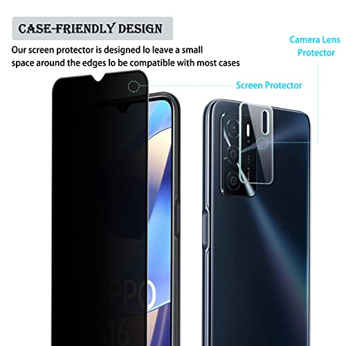 GiiMos Anti-Peep Vetro Temperato per Compatibile con OPPO A16/ OPPO A16S, 1 Pezzi Anti-Peep Pellicola Protettiva 9H Protezione Schermo 2 Pezzi Protezione Trasparente Fotocamera per OPPO A16/OPPO A16S