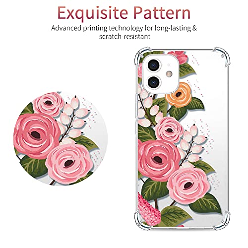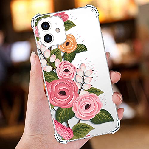 GiiMos Cover Compatibile con iPhone 11, [Con 2 Vetro Temperato] Floreale TPU Custodia, Silicone Antiurto Bumper Case Applica a iPhone 11 - Rosa