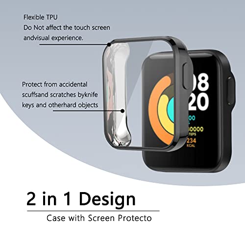 GiiMos Custodia Protettiva Compatibile con Xiaomi Mi Watch Lite / Redmi Watch Lite [2 pezzi], Piena Copertura Protettiva in TPU Antigraffio per Xiaomi Mi Watch Lite - Trasparente&Nero