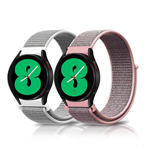 GiiMos 20 mm 2 Pezzi Cinturino Compatibile con Samsung Galaxy Watch 5/Watch 5 Pro 45mm/Watch 4/4 Classic/Active 2, Nylon Cinturino Dell'orologio in Velcrodi per Galaxy Watch 3 41mm,Rosa+Bianco