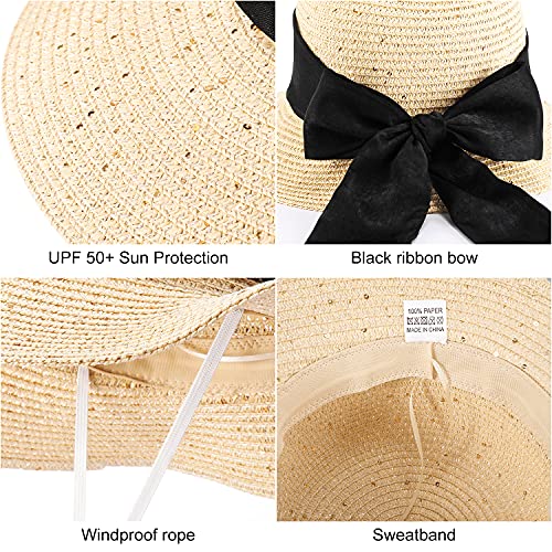 GIKPAL Cappello di Paglia Donna, Cappelli Estivo da Sole in Paglia a Tesa Larga con Fiocco, Protezione UV Paglia da Cappello della Sole per Spiaggia e Vacanze