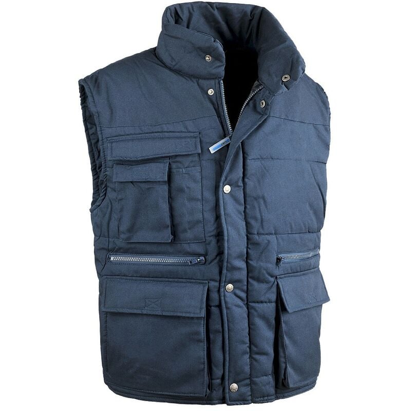 Mod. ANTARES 80 poliestere, 20 cotone. Imbottitura interna. Chiusura con cerniera e bottoni. 4 tasche esterne, 1 tasca interna. CE Ia categoria Taglia XL blu