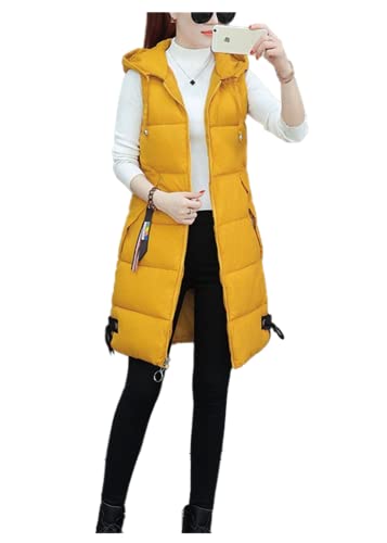 Gilet slim con cappuccio,Gilet Lungo Senza Maniche da Donna, Gilet Invernale Imbottito Lungo Trapuntato Giacca da Donna Smanicato Piumino con Cappuccio (M, giallo)