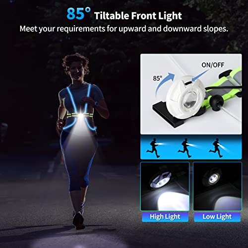 MoKo Gilet da Corsa Riflettente con Luce LED, Giubbotto Catarifrangente Regolabile e Ricaricabile, Cintura di Sicurezza Riflettente Alta visibilità per Jogging, Corsa, Ciclismo, Motociclismo, Verde