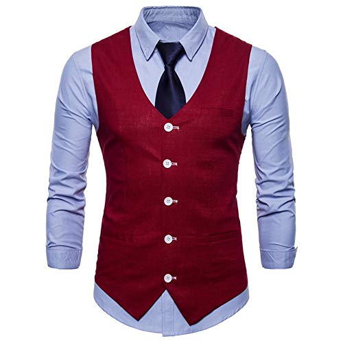 PRJN Gilet da Uomo in Cotone Formale da Cerimonia Nuziale da Uomo Gilet Uomo Slim Fit Elegante Casual Smanicato Scollo a V Panciotto Gilet in Cotone in Cotone da Cerimonia Formale da Uomo