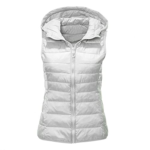 SGSD Gilet da donna con cappuccio, gilet trapuntato da donna, senza piumino, gilet corto per il tempo libero, bianco, XXL
