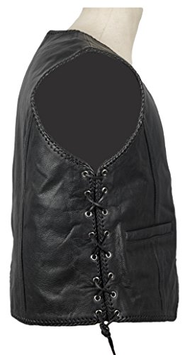 MDM Gilet Giacca Uomo in Pelle Biker Nero Chopper Patch