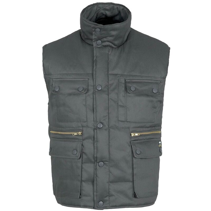 Composizione esterna: 100% cotone Composizione interna (imbottito + fodera): 100% poliestere Peso Tessuto esterno: 180 gr/M2 Peso Tessuto interno: 250 gr/M2 Plus: 100% cotone Gilet Invernale multitasche a collo alto con imbottitura interna realizzato in 100% cotone Gilet da lavoro invernale B3209 dalla WORKTEAM, è praticamente un articolo top della collezione, grazie al tessuto esterno in 100% cotone ed all'imbottitura interna che garantisce calore e comfort. Il collo alto è molto utile per ripararsi dalle basse temperature, mentre il giromanica è completamente regolabile. Essendo un gilet multitasche è dotato di due tasche sul petto per portare qualsiasi oggetto ed inoltre è presenta anche un taschino e due tasche interne con cerniera. Ideale per la Stagione Autunno/Inverno Caratteristiche Tecniche: Gilet imbottito collo alto Due tasche sul petto con bottoni automatici e taschino per la penna Due tasche interne con cerniera Due tasche laterali con bottoni automatici Giromanica