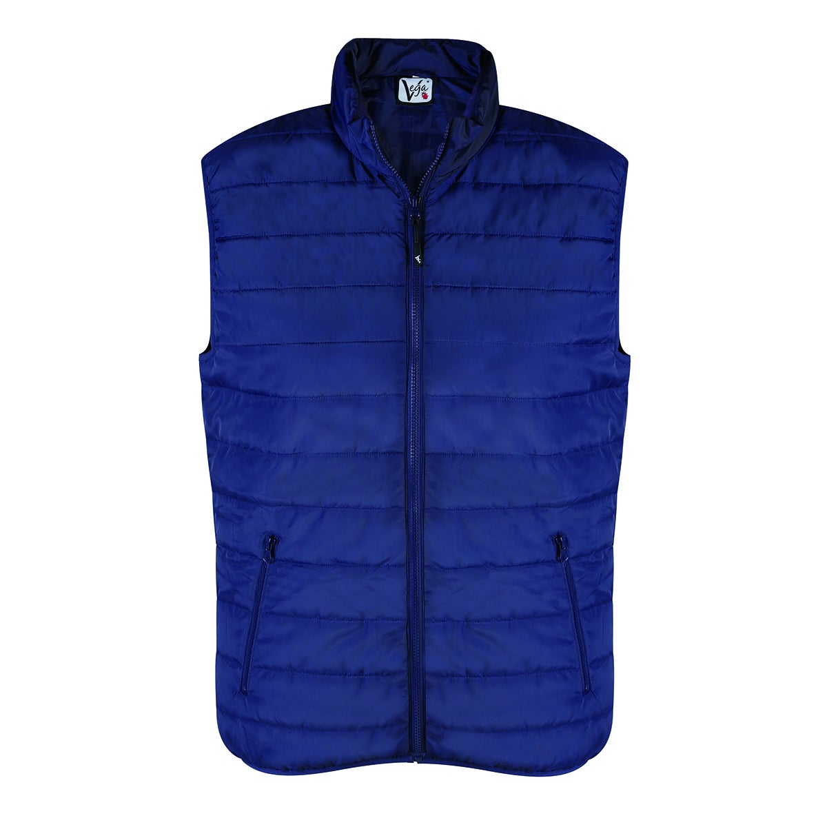 Gilet in nylon completo di multitasche, colore blu. Ideale per lavori all'aperto in caso di scarsa visibilità. Impermeabile e caldo