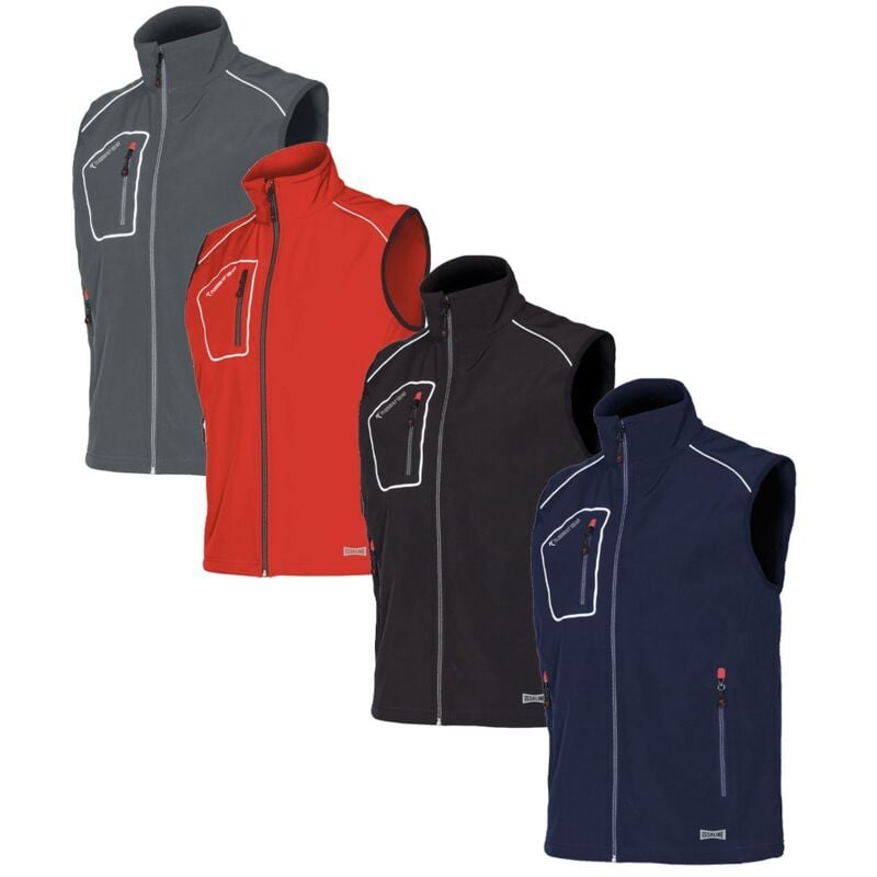 è una delle novità della collezione che Industrial Starter propone per coloro che non rinunciano al loro stle anche nell'ambito lavorativo. Linea pulita e giovanile il Gilet Snappy è realizzato in softshell poliestere 94% e 6% spandex con membrana TPU W/P 8000 mm e MVP 1000 gr/mq/24 h che assicura resistenza all'umido e alla pioggia ;