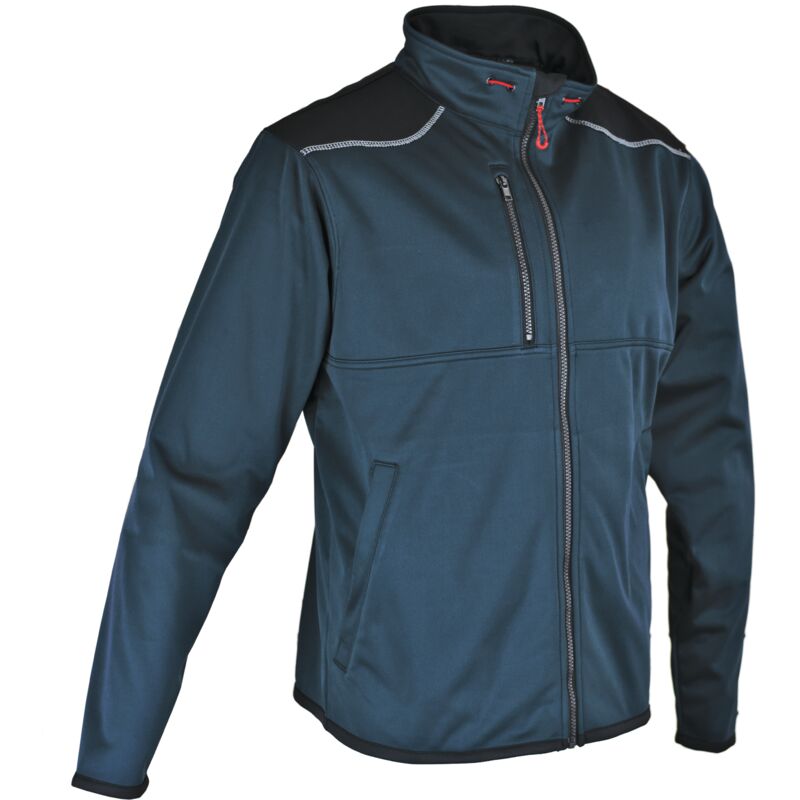 Caratteristiche: Collo alto Cerniera iniettata + mentoniera 1 tasca sul petto con zip a destra, apertura verticale + 2 tasche a filetto inferiori Maniche lunghe Cuciture flatlock Corda elastica Finitura in sbieco a contrasto sui polsini e in vita Trasferimento retroriflettente Materiale: 100% poliestere - 240 g/mq