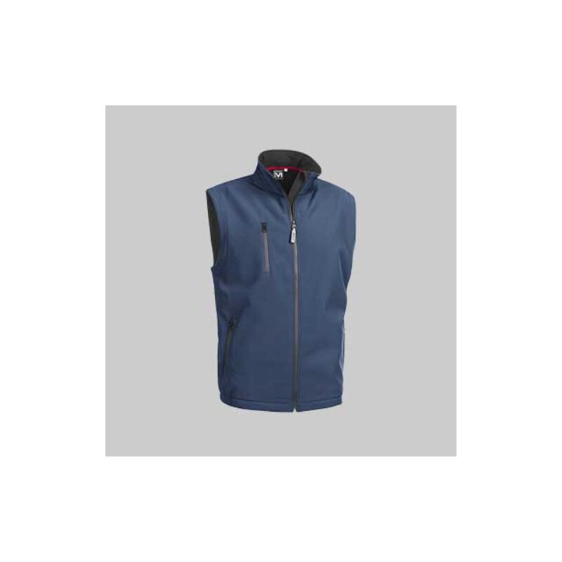 Tessuto: 95% Poliestere, 5% Elastam. Peso: 280 g/m2.Chiusura centrale con cerniera ricoperta, 2 tasche laterali con cerniera ricoperta. Tasca sul petto con cerniera ricoperta. Fondo con elastico ai lati. DPI 1a Categoria, conforme UNI EN 14058. Etichetta Staccabile. Colore blu navy. Gilet multitasche softshell blu tg. xxl Abbigliamento da lavoro estivo