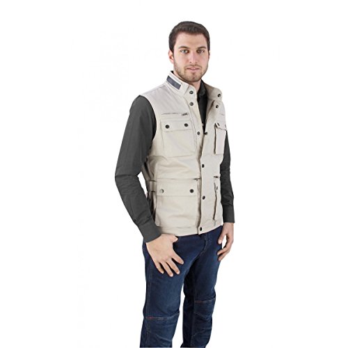 OJ - Gilet Multitasche Tessuto Esterno in Cotone Una Tasca Posteriore Brezza, Beige, L