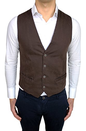 Gilet panciotto uomo sartoriale marrone brown elegante casual in cotone nuovo 100% made in Italy (L)