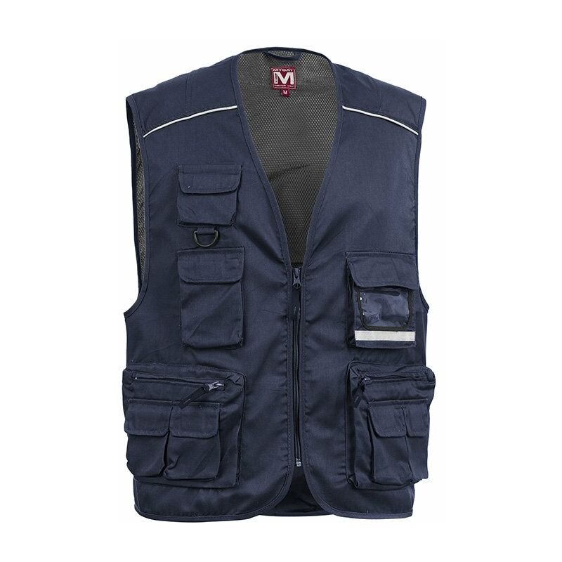 80% POLIESTERE, 20% COTONE 190 g/m2 MASTERPOLY 1 PZ. BOX 30 PZ. S - M - L - XL - XXL - 3XL DPI 1a categoria Chiusura centrale con cerniera in plastica Collo a V 8 tasche esterne Tasca portacellulare Tasca portabadge estraibile con chiusura con pattina e velcro 2 tasche posteriori con chiusura con pattina e velcro Piping in silver fluo Conforme UNI EN ISO 13688 (testato per la protezione contro le lesioni meccaniche superficiali)