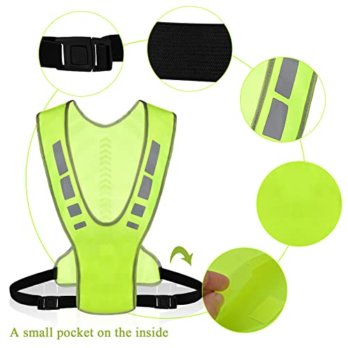 Gilet Riflettente da Corsa, Gilet Catarifrangente Donna Uomo Running con 4 Bande Riflettenti, Regolabile Leggero Giubbotto di Sicurezza Riflettente per Jogging Sport Bici Ciclismo, Ad Alta visibilità