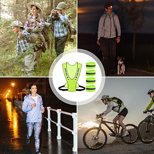 【Set di sicurezza riflettente compatto da 5 pezzi】: viene fornito con 1 giubbotto di sicurezza ad alta visibilità e 4 bande riflettenti. Facile da indossare e può essere utilizzato in qualsiasi momento. È un buon compagno per il ciclismo e la corsa.