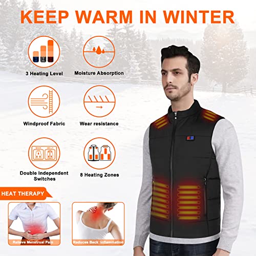 Gilet Riscaldato Uomo Donna Interruttore indipendente Giacca Riscaldabile 8 zone di riscaldamento gilet caccia 3 Livelli giubbotto moto uomo per All'aperto Lavoro, Pesca(Non Batteria Inclusa)-XL