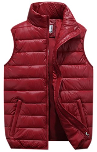 Gilet Uomo Smanicato Senza Maniche Giù Cotone Giubbotti Moda Ultraleggeri Cerniera Giacche Caldo Giubbotto con Tasche Cappotto Inverno Corto Autunno Invernale Rosso M