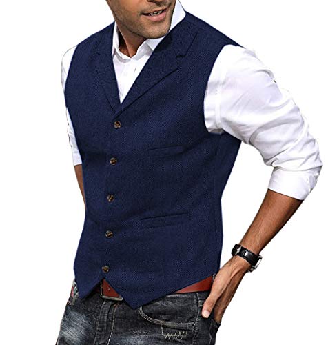 HSLS Gilet da uomo in tweed di lana casual Gilet a spina di pesce per testimoni dello sposo(XX-Large, Blu Reale)