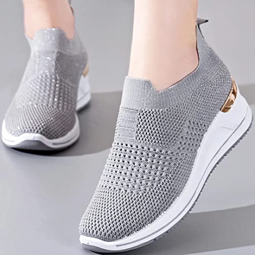 GILKUO Sneakers Zeppa Donna Interna Estiva Senza Lacci Scarpe Sportive da Ginnastica Fitness con Tacco Sneaker Casual GrigioTaglia 41
