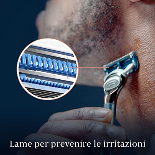 Per prevenire le irritazioni, il suo design riduce al minimo il contatto della lama con la pelle sensibile, per questo motivo non otterrai una rasatura profonda come ti aspetteresti dai rasoi a 5 lame