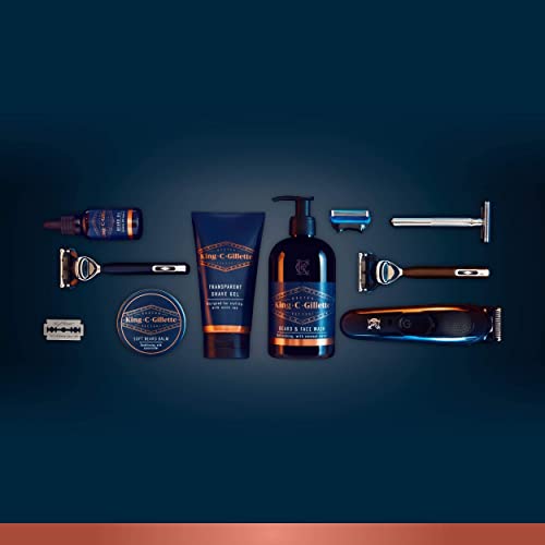 King C. Gillette Regolabarba Uomo, Rasoio a Mano Libera, Gel Da Barba Trasparente, 3 Lamette da Barba per Pelli Sensibili, Idea Regalo Uomo Kit Professionale